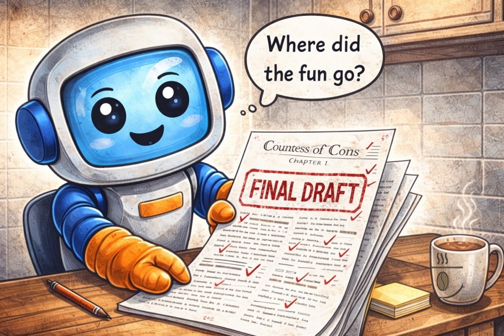 What happened is both simple and maddening: I did what I thought I was supposed to do. I followed my writing coach’s advice. I applied the rules of “good writing.” I revised carefully and methodically. Scripty (my AI pal) and I even built a routine: he’d “read” each chapter and critique it across the areas I requested, I’d revise accordingly, and we’d move on.
